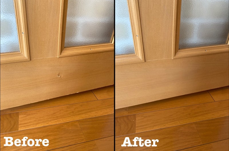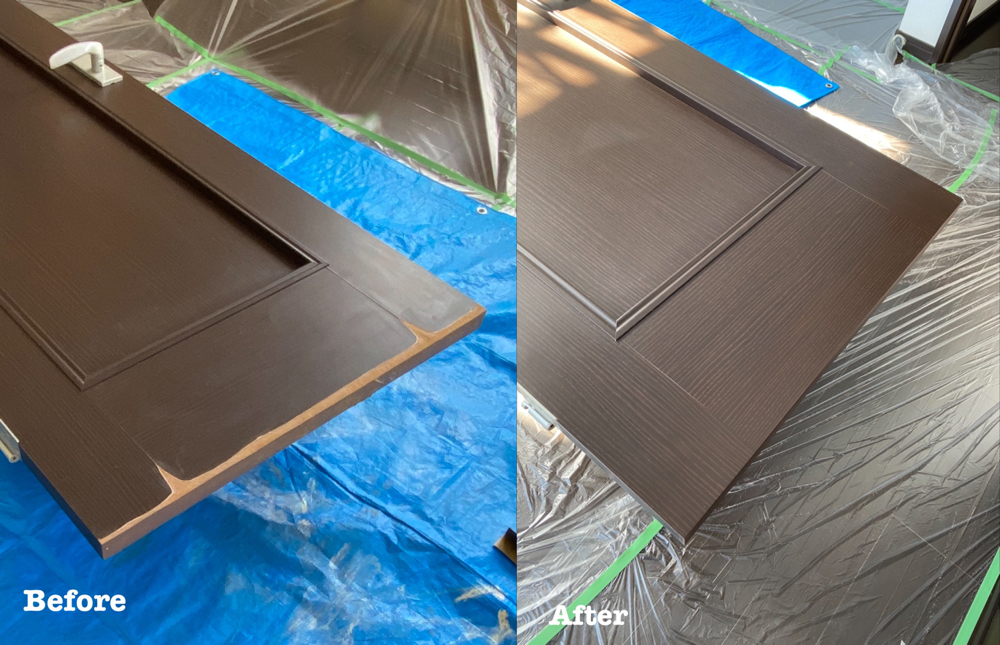 このような木目調のリペアでは、色を合わせる調色技術、柄を再現する技法能力が求められ仕上がりに大きく影響します。