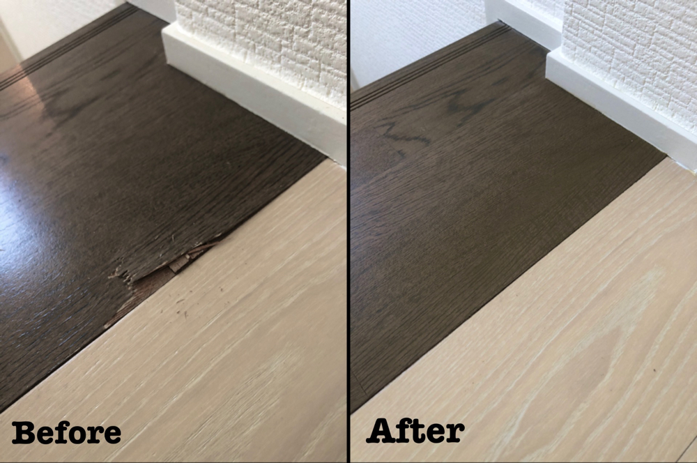 埼玉県富士見市よりリフォーム工事に伴う階段の割れ補修をさせて頂きました。