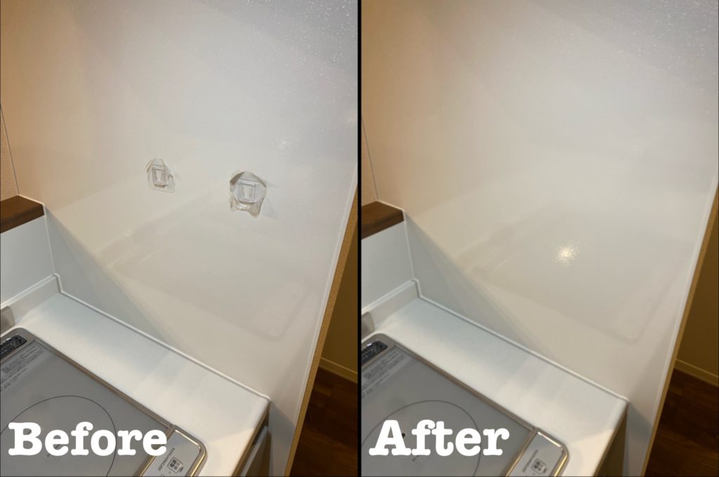 埼玉県さいたま市見沼区にて原状回復工事に伴うキッチンパネルの粘着フック跡の補修工事をさせて頂きました。