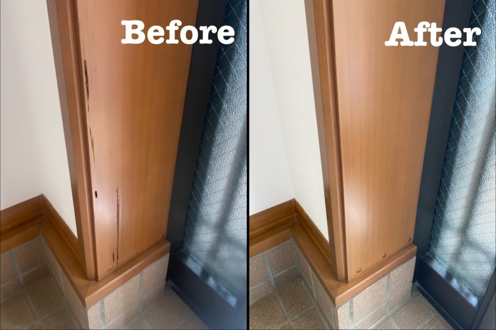 埼玉県上尾市にて個人のお客様から玄関枠の補修工事をさせて頂きました。