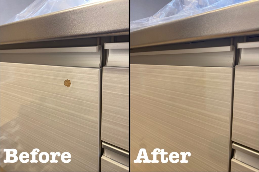 埼玉県吉川市より原状回復工事にてキッチン収納扉の補修工事をさせて頂きました。