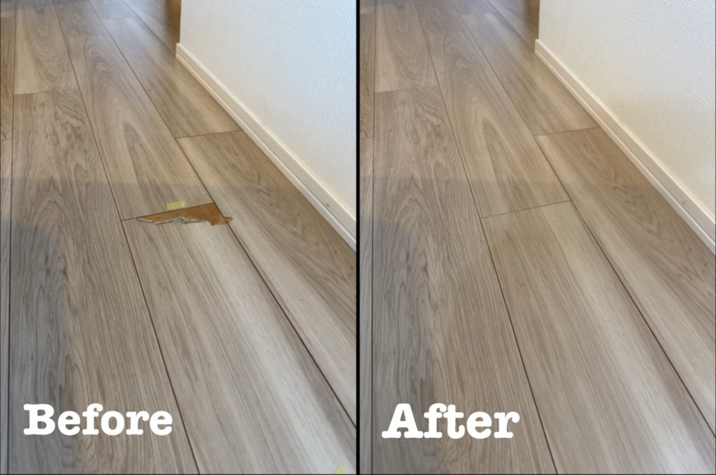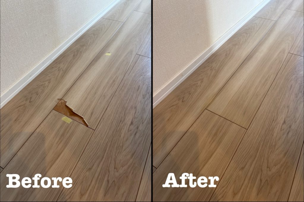 埼玉県川口市にて原状回復工事により、めくれたシートフローリングの補修をさせて頂きました