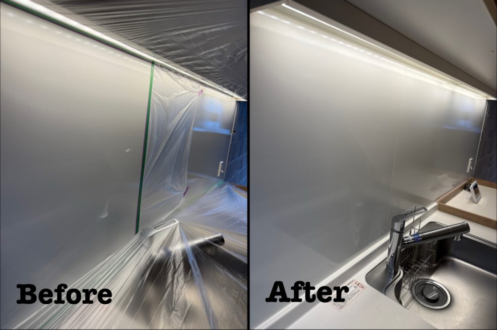 埼玉県三郷市にて原状回復工事によるキッチンパネルの表面剥がれの補修をさせて頂きました。